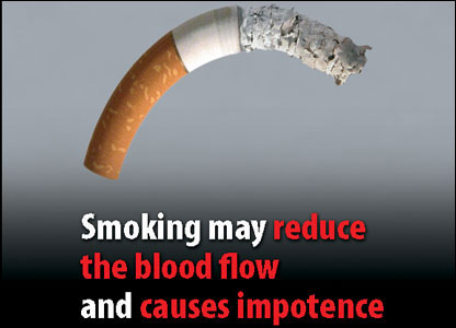 Smoking damage our blood vessels leading to the poor blood supply resulting in erectile dysfunction. The contents and chemicals in the cigarette/bidi/cigar smoke injure the inner lining of the blood vessels resulting in improper flow of blood in the penile region, thus resulting in erectile dysfunction.